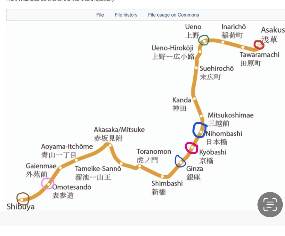 The familiar "Tokyo Metro Ginza Line" is our transportation mode for getting to places.
