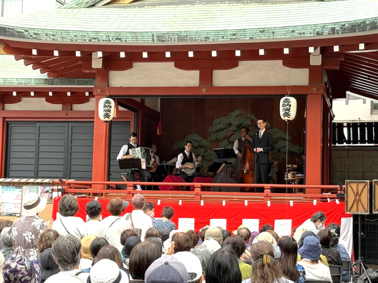 Attended a 東京大衆歌謡楽団 concert at the Asakusa Shrine.