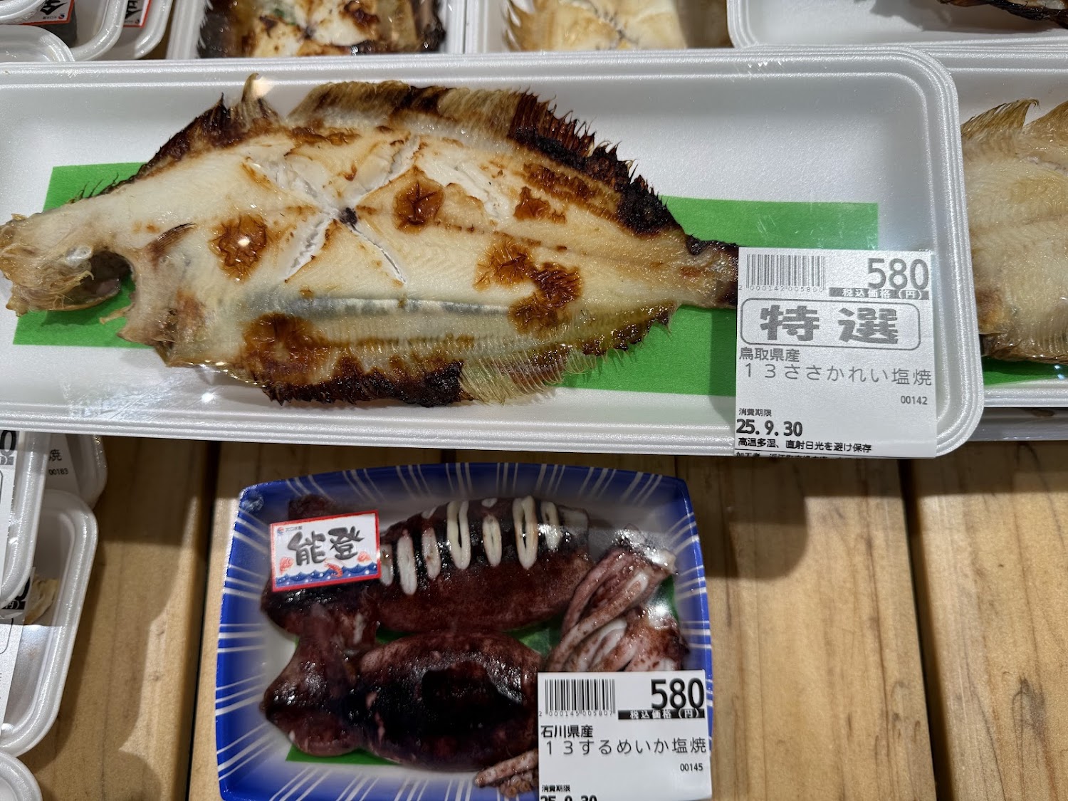 We bought this grilled squid in the lower photo, and it was thick and juicy.