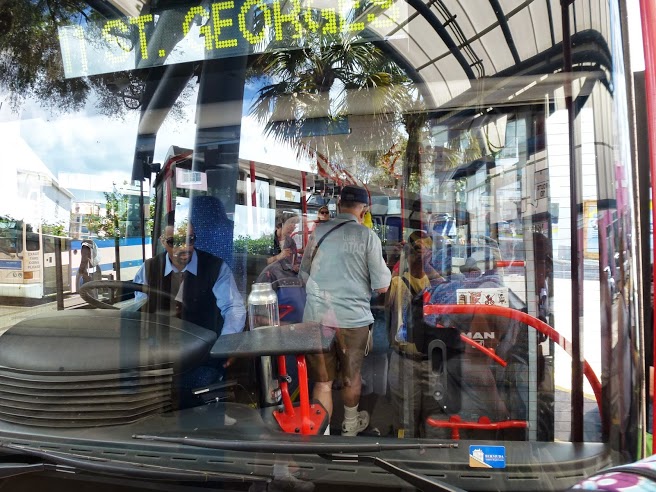At Hamilton's bus terminal, boarding #10 bus to St. George and Flatts