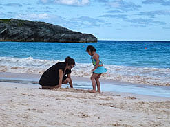 This was the only day out of the 7-day cruise that many passengers felt sea-sick. The captain announced that after 4pm everything would calm down. Angelina and Gabby came down to deck 5 to visit Philip/Ayumi's cabin. They were intrigued by the fold-down bunk bed and had a great time climbing up and jumping down. Day 3 - Bermuda - Horseshoe Bay (5/5/2013 Sunday): NCL Dawn docked at Bermuda's Kings Wharf in the former Royal Dockyard about 9am Bermudian Time (one hour ahead of Boston). Shops in Hamilton and St. George were closed because it was a Sunday. Public buses and ferries also ran on a reduced schedule, so spent today at the Horseshoe Bay beach.