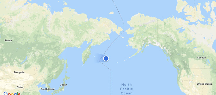 October 11th, cruising along the southern side of the Kuril Islands of Russia (千島列島).