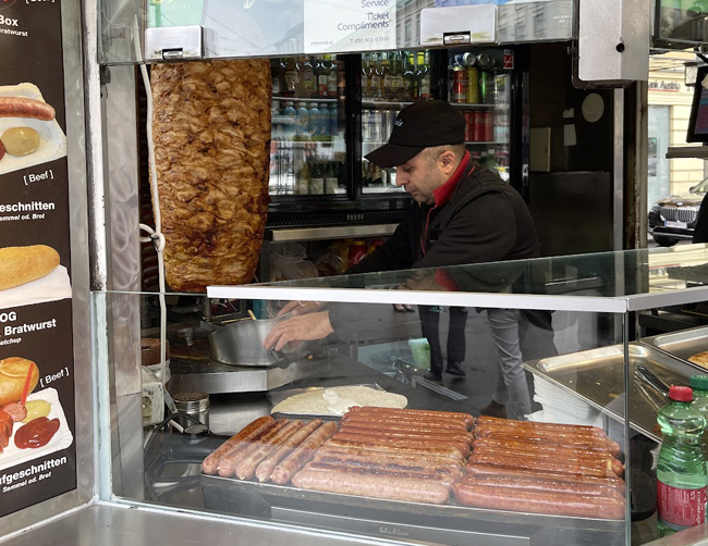 We disembarked Tram#D in front of Hotel Bristol, and this falafel/kebab