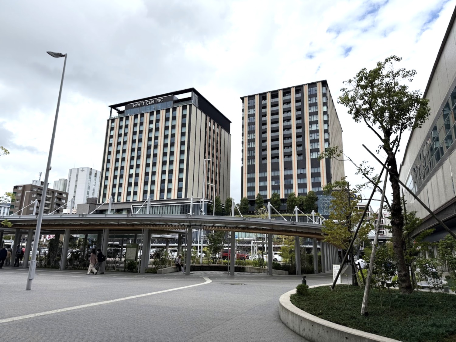 The building on the right-hand side is where our hotel, the Hyatt House, is located.
