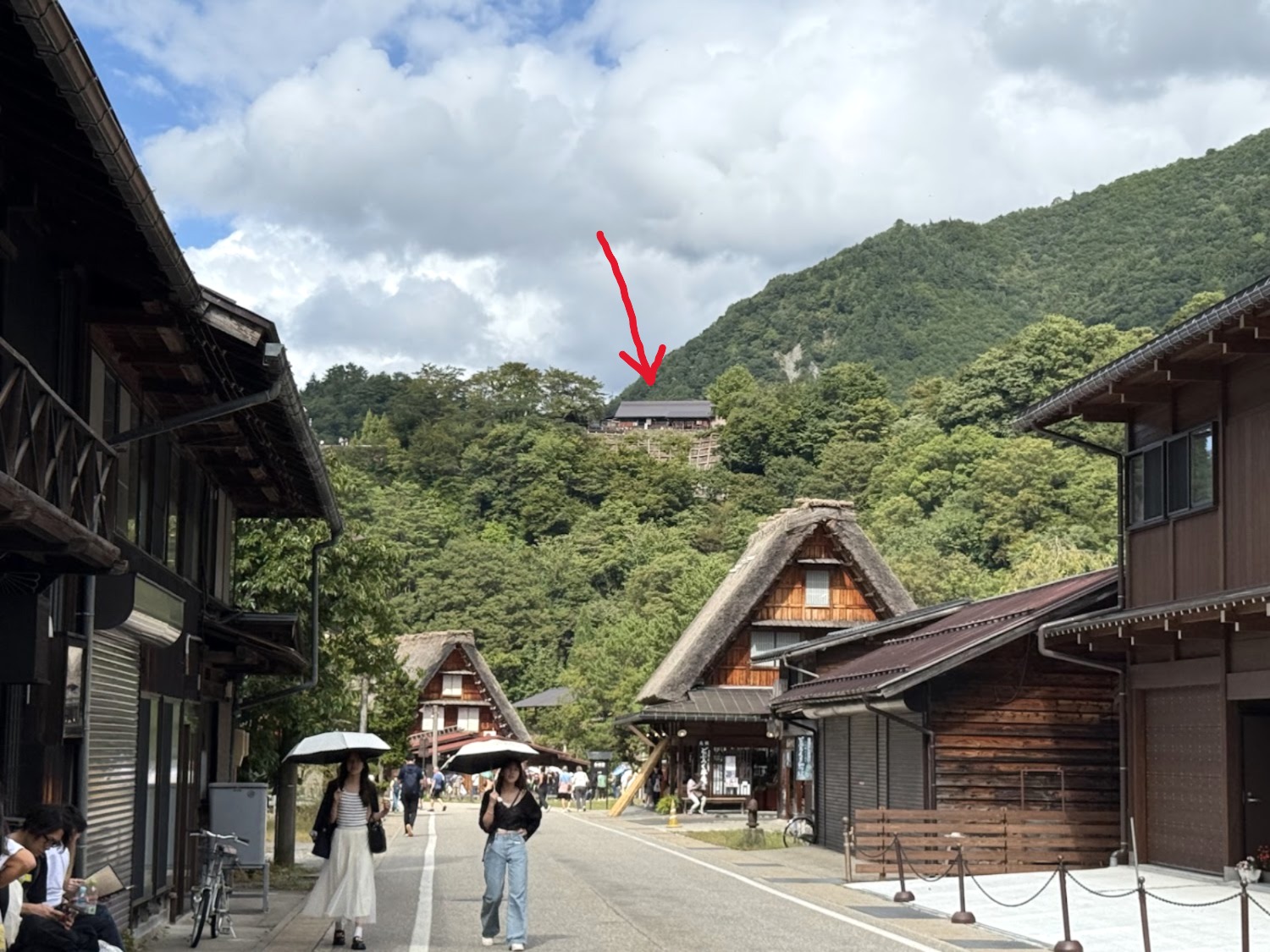The red arrow points to the observation deck where we were earlier (to view the village from high above.)