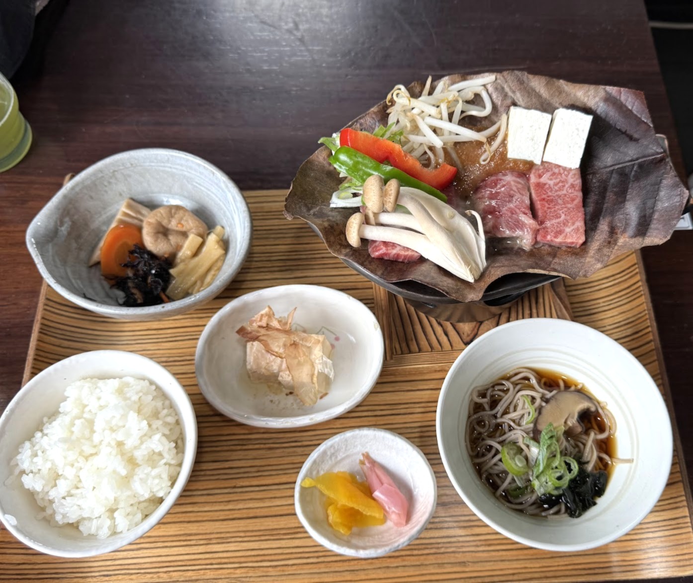 MC ordered a mountain region specialty, Hida beef and miso grilled on a Hoba leaf (飛驒牛朴葉味噌燒