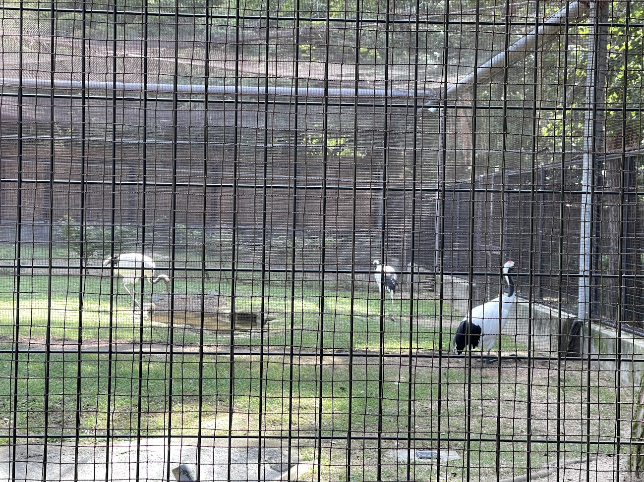 These cranes are left free to roam and fly in the garden twice per month from September to February,