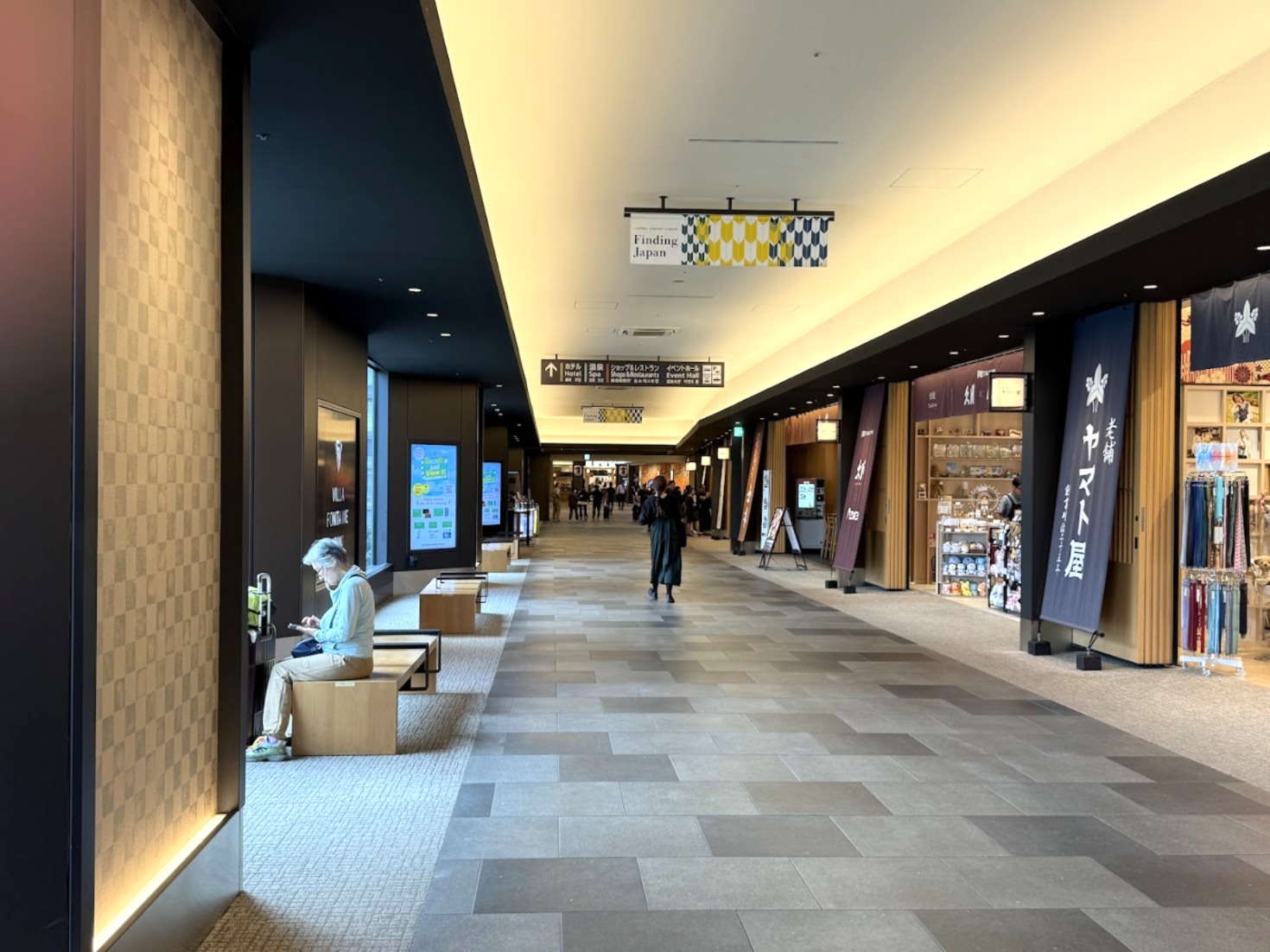 Then there is a long corridor lined with shops leading to Hotel Villa Fontaine at the end.