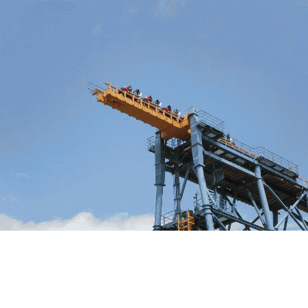 號稱全球第一座斷軌式雲霄飛車,在台中公開亮相,最特別的是、其中一段軌道是活動的,雲霄飛車開到這裡、就突然垂直下墜、吊掛在十二層樓的高度,然後再瞬間俯衝,結合自由落體和高速快感,全程尖叫聲連連。 雲霄飛車慢慢爬上十二層樓高臺,前面突然沒軌道了。像是個翹翹板的軌道,突然翻轉90度,連人帶車、面向地面倒頭栽、吊掛半空中,靜止幾秒,好戲要登場了。自由落體的重力加速度,讓整列車帶著110公里高速、突破黑漆漆的隧道,心臟快停嗎?趕緊深吸口氣、因為又要衝向360度大翻轉。 |