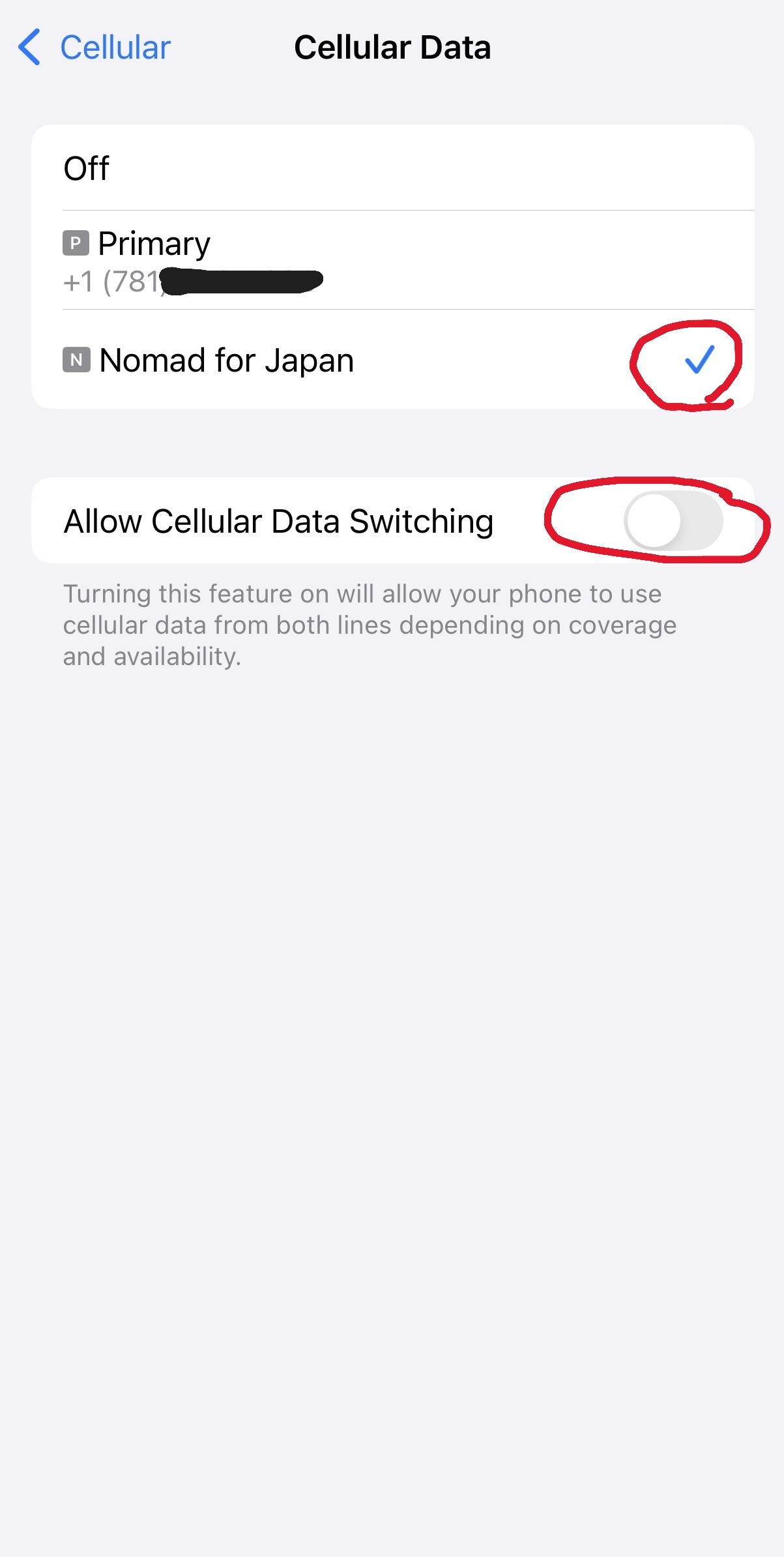 In Settings > Cellular > Cellular Data > select to use your Primary eSIM.