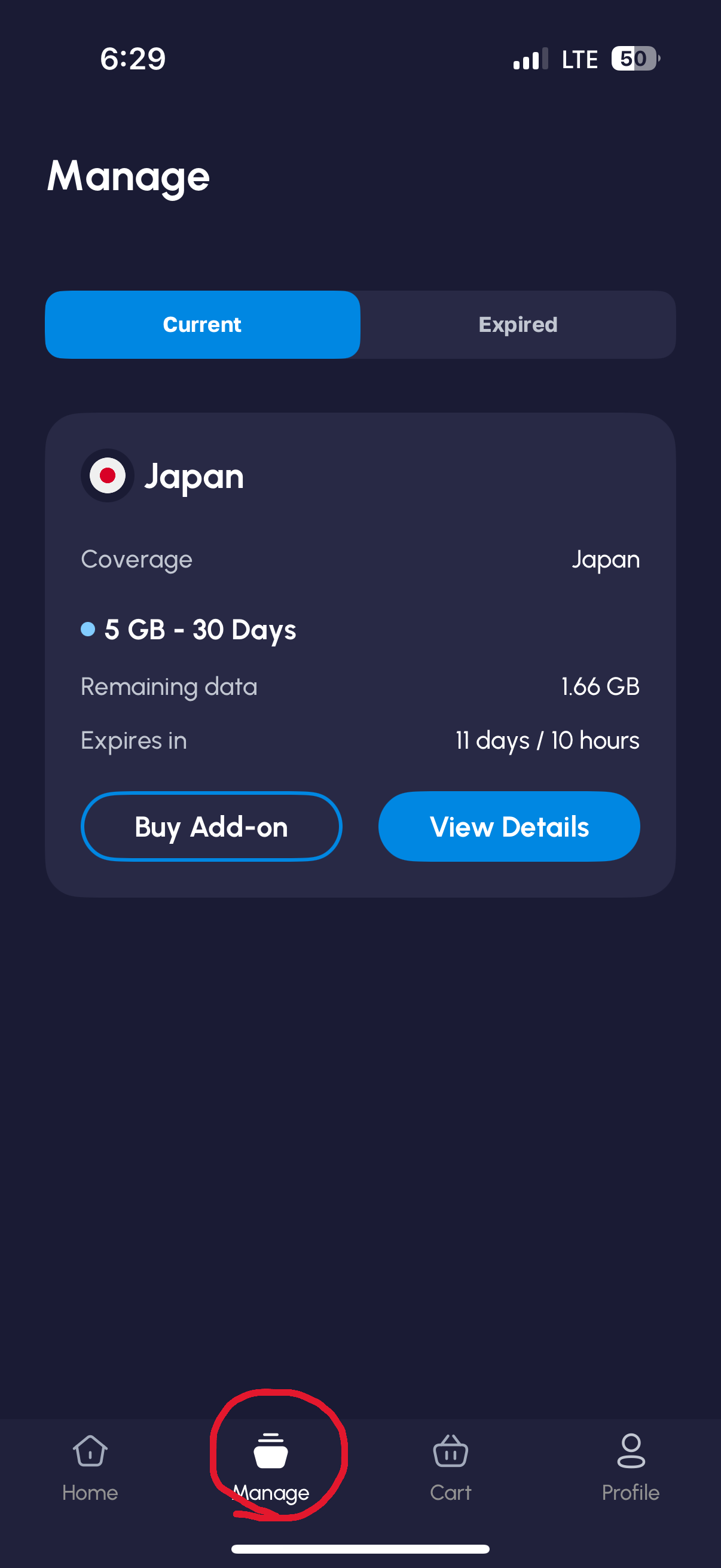 In Settings > Cellular > Cellular Data, select to use your travel eSIM for data, and DO NOT ALLOW for Cellular Data Switching. This way, your data usage will only come from your travel eSIM, and not your Primary. At this point, in Settings > Cellular, you should have the screen similar to the above. Your Cellular Data is configured to use your travel eSIM, and you have both eSIMs ON. Double check the 5 steps in "Verify your iMessage Settings" in the Summary section to make sure you will send and receive iMessages from your US phone number. Perform disabling of "Send as Text Message" to disable sending as SMS (the green bubbles) as described in the Summary section. iMessages (the blue bubbles) are free when you are connect to the internet. From the vendor's app screen, you may tap "Manage" to see how much data you have remaining at any point in time, or to buy more data. At the end of the trip, I still have 1.66 GB of data left on my travel eSIM. After you have returned to the USA Configure your settings to be the same as before you leave home. i.e., turn OFF the travel eSIM, and set your Cellular Data to use your Primary eSIM.While at home, you may also want to enable the "Send as Text Messsage" in sending in SMS green bubbles when iMessage is unavailable. You may delete your travel eSIM when you no longer need it. |