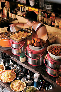 這裡有很多招牌菜,像是清鮮的現煮鮮魚湯、干貝肉燥飯……,都是來這裡的客人必點的好味,除此之外,還有季節性食材,像是有機當歸葉做的煎蛋,吃來清香可口,都是別處不易吃到的特殊好味。
